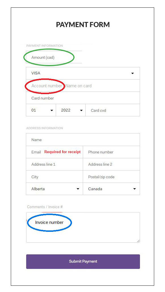 There are three main things you need to locate in your invoice sheet (not to be confused with your order confirmation sheet) to pay your online invoice form. Your TOTAL AMOUNT, INVOICE NUMBER, and ACCOUNT NUMBER.