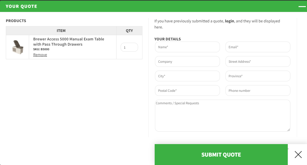 Once your quote is complete please fill out your contact information and submit the quote. You may have to refresh your screen in order for all items to add into the form.